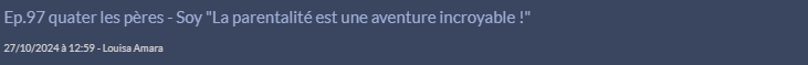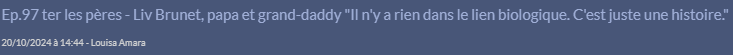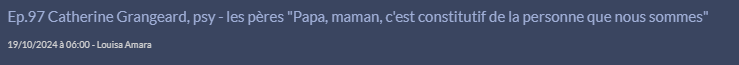 Je mûrissais depuis longtemps des épisodes sur le rapport père / fille (et père/fils dans une moindre mesure), et l’impact que cette relation peut avoir sur les rencontres amoureuses, intimes. Il y a tellement de choses à dire ! J’ai donc décidé de me concentrer sur quelques aspects. 1) aspect psychologique, analytique, avec la psy Catherine Grangeard 2) témoignages de pères